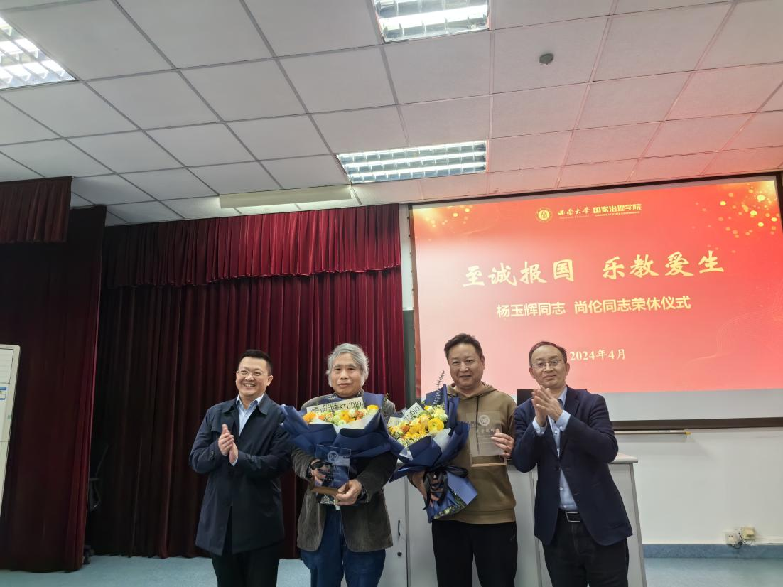 发布时间: 2024-04-09 15:57:36 已阅读:荣以师者,薪火相传。4月7日下午,全院教职工齐聚一堂,在17教210会议室为退休教师杨玉辉、尚伦同志隆重举行荣休仪式。仪式由院党委书记刘勇主持。