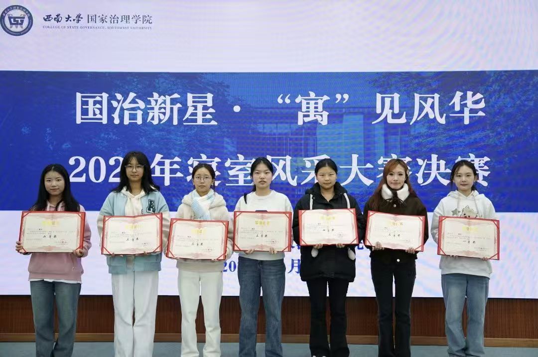 发布时间: 2025-11-27 15:31:36 已阅读:为营造和谐融洽、积极向上的寝室文化氛围,展现学生集体创造力与青春风采,11月21日中午,学院“国治新星‘寓’见风华”2025年寝室风采大赛决赛在绩镛楼3308教室顺利举行。学院团委书记肖颜、年级辅导员杨钦清、史丽、曾琪芮、各参赛寝室成员以及评委团成员参加活动。决赛由2025级学生乔兵琪主持。