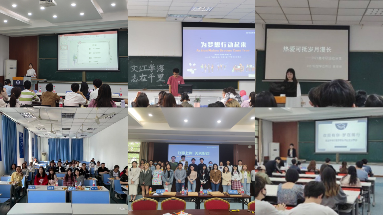 此次分享会以专业为单位分6期进行,共有39名考取国内外高校研究生、公务员和各大企业已录取的优秀学生参加分享。考取研究生的申雨昕、马若兰等同学结合自身经历,对考研过程中面临的选择、规划、心态、专业等方面的问题进行讲解,并针对考研过程中的习惯养成、专业课复习方法等给出了切实可行的建议,为同学们提供了满满“干货”。考取公务员的杨原野、赖茜等同学从考公的信念、形式、分类及备考经验方面进行讲解,全面地介绍了考公成功所必须的条件,同时通过考公公众号、APP的分享,为同学们指明了方向。即将入职的刘丝雨、李儒政等同学从就业观、就业前的准备、就业目标、就业技能培养等方面向同学们进行了分享。通过真实的的案例鼓励同学们多投简历、从容面试,与此同时也要做好充分准备,在就业方向上走出一条适合自己的好道路。考取国外高校的郭玥同学则结合自身经历向同学们分享了留学中应该注意的各种事项和基本要求、择校方法等,并强调关注各个学校申请截止时间和提升自身申请条件的重要性,通过定制适合自身的专属学习计划,为留学申请做准备。